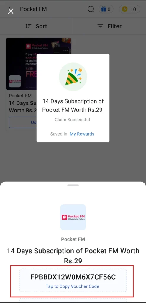 If that code is not valid, it shows an expired or invalid promo code message. Don’t worry about that, we’ll help you find the latest and active Pocket FM promo code unlimited coins.
